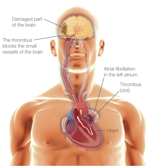 Atrijska fibrilacija (AF) poveča tveganje za možgansko kap. Približno 40 % bolnikov z atrijsko fibrilacijo nima simptomov in je mnogim med njimi diagnosticirana pri hospitalizaciji zaradi drugih stanj, vključno z možgansko kapjo.